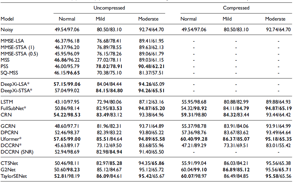 ????對(duì)于模擬正常聽力/聽力受損人群,基于深度學(xué)習(xí)的方法處理結(jié)果都相較傳統(tǒng)算法有更好的性能體現(xiàn)。