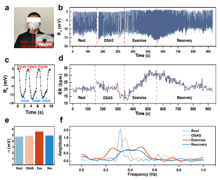 圖3 基于聲阻抗效應(yīng)的聲表面波實時呼吸監(jiān)測(圖/中國科學(xué)院聲學(xué)研究所)